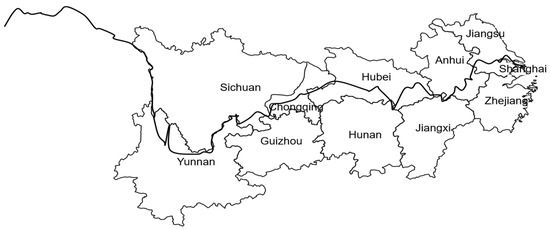 As an important economic belt of China’s “Belt and Road” strategy, the Yangtze River Economic Belt is one of the regions with the strongest comprehensive strength and the most important strategic support role [3]. Figure 1 shows it spans three major regions in the east, middle, and western parts of China, covering 11 provinces and cities in Shanghai, Jiangsu, Zhejiang, Anhui, Jiangxi, Hunan, Hubei, Chongqing, Sichuan, Guizhou, and Yunnan. This is shown in Figure 1. Due to its unique geographical location, important ecological environment, and huge development potential, the Yangtze River Economic Belt occupies a pivotal position in China’s economic landscape. Promoting the coordinated development of the Yangtze River Economic Belt region is of great significance in solving the problem of unbalanced and inadequate regional development with the view to achieve common prosperity in the region.