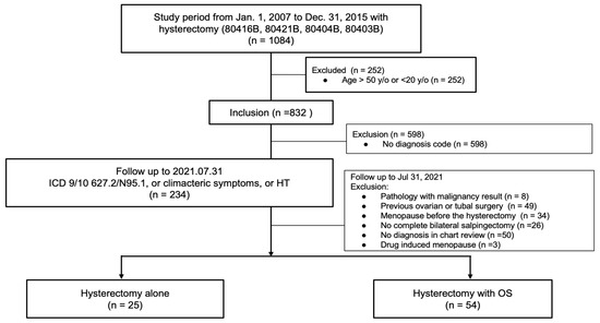 We used the hospital’s electronic medical history database to retrieve data on patients who had undergone a hysterectomy with or without an OS over a 9-year period (January 2007 to December 2015) and who were followed-up until July 2021.