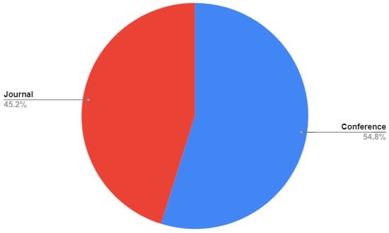 Regarding the type, in Figure 3 it is shown that 12 studies (40%) were published in journals and 18 (60%) on conference proceedings.