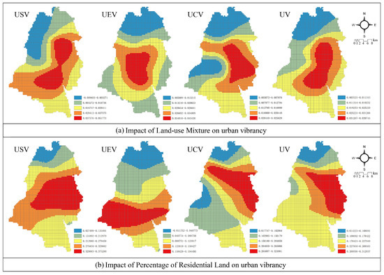 Impact of diversity of land-use on various urban vibrancies. (a) Impact of Land-use Mixture on Urban Vibrancy. (b) Impact of Percentage of Residential Land on Urban Vibrancy.
