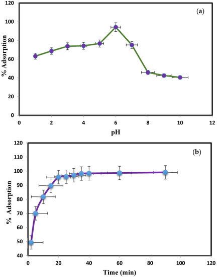 3.2. Effect of pH Variation, Contact Time, and Adsorbent Dose