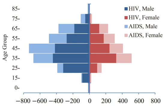 Age and gender distribution of people living with HIV in Guangxi Province.