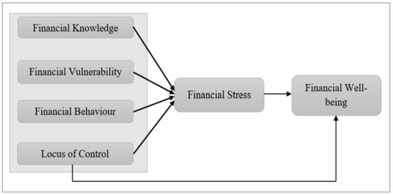Financial vulnerability is defined as “the likelihood of a person experiencing financial difficulties.” Consequently, financial hardship is a condition of distress in which a person is unable to sustain their standard and quality of living [54]. The concept of financial vulnerability emphasises future direction (the potential for financial distress) while disregarding current living standards and money management. In the absence of empirical data, it is reasonable to presume that decreased financial vulnerability leads to increased financial well-being among individuals.