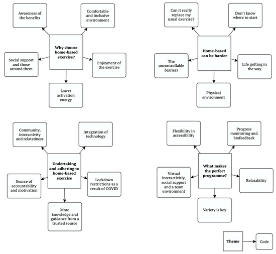 After code generation, four key themes were identified and are displayed, alongside corresponding codes, as shown in Figure 1.