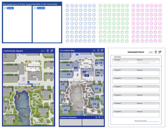 In the design of the toolkits, we used Geographical Information Systems (GIS) to accurately create a spatial map of the local community, which was used as the basis for the co-creation workshop [40,41]. In addition, to ensure that participants of all ages can identify spatial orientation and recognize each location, we tried to recreate the situation as much as possible from the visual aspect. We also introduced the map to the residents in a comprehensive manner during the workshop so that participants could develop spatial awareness.