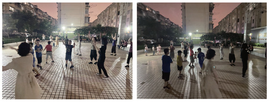 Furthermore, to enable the community to fully understand each other’s ideas, we visualized the prelude information from the pre-participatory research and the conceptual plan output from the co-creation workshop, and we selected the local community public square as the exhibition venue. Finally, we asked the residents to fill in the same questionnaire once again (Figure 5). In the follow-up survey, we found that there was a decrease in the number of conflicts in the square during the night when young people danced together with older residents (Figure 6).