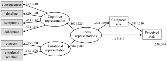 The present findings explain how illness perceptions may influence perceived risk for BC in two groups of university students from different socio-cultural contexts. We found that the explanatory model used was invariant. This suggests a general cross-cultural relationship between illness perceptions and risk. However, there were significant differences in the relationship between the variables for each group. These differences may be related to how illness perceptions may serve to generate risk estimates based upon their emotional and cognitive components and contextual factors. The results suggest a higher direct and mediated relationship between illness perceptions and individual risk perception for the Portuguese group. This means that illness perceptions play a more important role in Portuguese women estimating risk. However, the direct relationship between compared risk and individual perceived risk was stronger for the UAE participants. It is important to highlight that the model attained a similar amount of explained variance in both groups. Still, other cultural variables (e.g., religion) may be important in estimating risk regarding the understanding of individual risk perception. This should be addressed in future research.