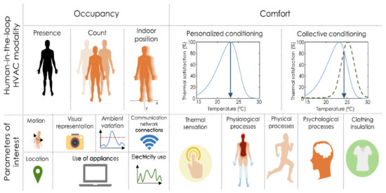 Human-in-the-loop HVAC modalities of occupancy and comfort along with their parameters of interest [4].