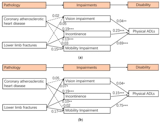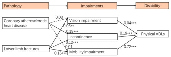 - Fauth, E.B.; Zarit, S.H.; Malmberg, B. Mediating relationships within the Disablement Process model: A cross-sectional study of the oldest-old. Eur. J. Ageing 2008, 5, 161. [Google Scholar] [CrossRef] [PubMed]