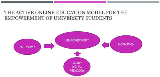 Second, at a strategic and operational level linked to the activation of students in digital skills, it is necessary to use digital resources to the point where students can say they are in the so-called comfort zone. Reviewing classical authors such as [6], we find that the subjective and implicit processes of decision-making by students highlight the degree of internalization of digital skills. The second implication is the generation of scenarios in which the application of these tools is required until the students activate the choice spontaneously or forcedly, as has been the case with the COVID-19 pandemic. In any case, for the students to be empowered, they must be autonomous, as we have indicated, and they must have mastery and digital appropriation. Additionally, the process will be successful if the appropriate spaces are generated (active dynamics), which provoke the second dimensions of our model, namely the motivation of the students, since we have caused the choice and therefore, the identification of preference, adding the reinterpretation of learning objects that are capable of designing and being applied in their networks or the close environment causing the social impact.