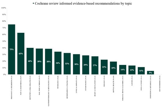 Evidence-based recommendations informed by evidence from Cochrane reviews by topic in Danish National Clinical Guideline development from 2014 to 2021.