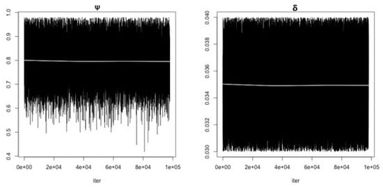 - Haario, H.; Laine, M.; Mira, A.; Saksman, E. DRAM: Efficient Adaptive MCMC. Stat. Comput. 2006, 16, 339–354. [Google Scholar] [CrossRef]