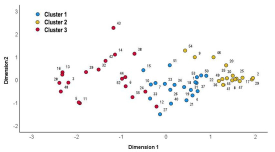 Multidimensional scaling (MDS) of the final three-cluster solution.