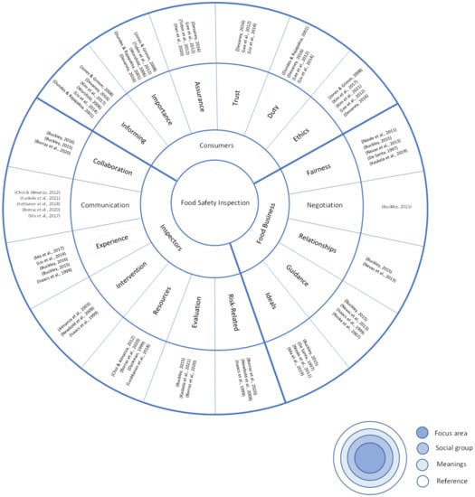 This review examined what food safety inspection means to society, what society expects to gain from inspection, and determines whether the understanding and experience of food safety inspection differs amongst those engaged in the process. It identified the influences that shape these interpretations, particularly with regard to what these groups believe inspection achieves, and how these groups shape these explanations of causality. Hence, this review adopts a position reflective of social constructionism, whereby meaning is deemed to be knowledge constructed by society through interpretation and lived realities []. This applies an epistemological stance that knowledge is held in the beliefs and interpretations of members of society and that these are realities, regardless of their objectivity [].