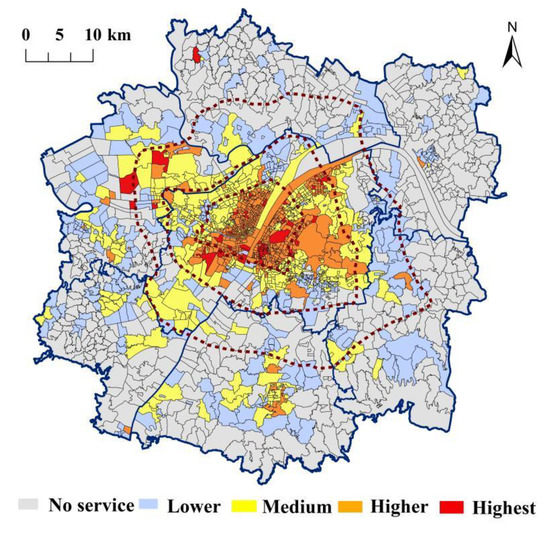 Spatial distribution map of the supply service level enjoyed by community residents.