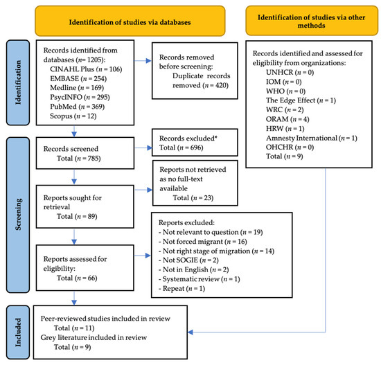 APA StyleYarwood, V., Checchi, F., Lau, K., & Zimmerman, C. (2022). LGBTQI + Migrants: A Systematic Review and Conceptual Framework of Health, Safety and Wellbeing during Migration. International Journal of Environmental Research and Public Health, 19(2), 869. https://doi.org/10.3390/ijerph19020869