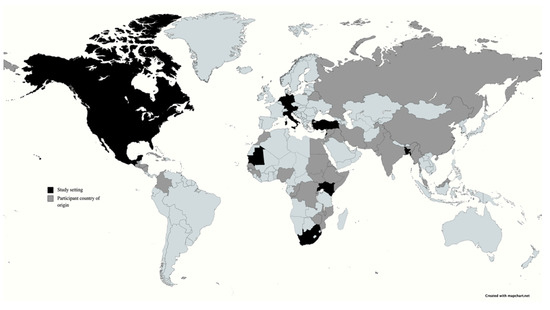 - Kahn, S.; Alessi, E.; Woolner, L.; Kim, H.; Olivieri, C. Promoting the wellbeing of lesbian, gay, bisexual and transgender forced migrants in Canada: Providers’ perspectives. Cult. Health Sex. 2017, 19, 1165–1179. [Google Scholar] [CrossRef] [PubMed]