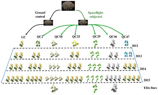 - Mao, R.J.; Qi, Z.H.; Han, R.L.; Liu, F.H.; Liu, Y.; Liang, Z.S. Spaceflight-induced variation on biological traits and effective components of Cassia obtusifolia. China J. Chin. Mater. Med. 2015, 40, 2571–2575. [Google Scholar] [CrossRef]