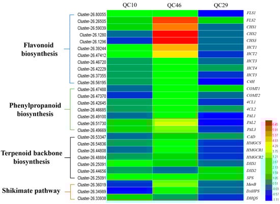 3.8. Expression Analysis of Key Enzyme Genes in the Shikimate Acid Pathway