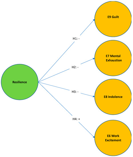 | E6 Work Excitement | E7 Mental Exhaustion | E8 Indolence | E9 Guilt | E14 Resilience | |