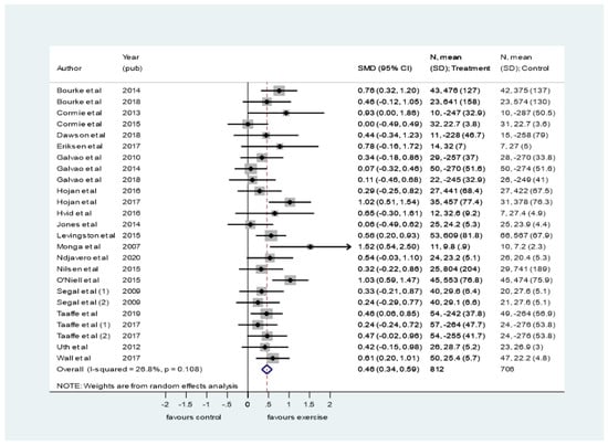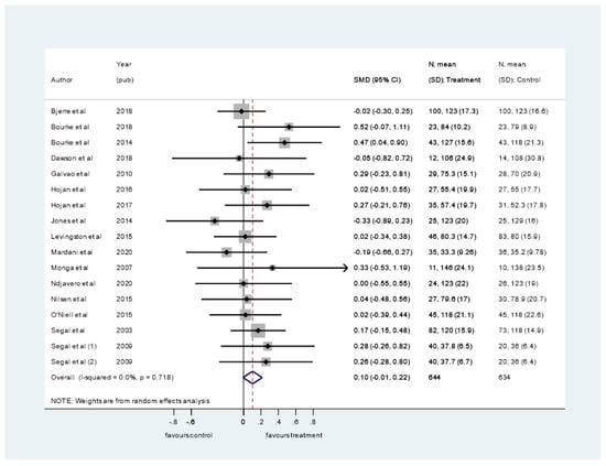APA StyleAndersen, M. F., Midtgaard, J., & Bjerre, E. D. (2022). Do Patients with Prostate Cancer Benefit from Exercise Interventions? A Systematic Review and Meta-Analysis. International Journal of Environmental Research and Public Health, 19(2), 972. https://doi.org/10.3390/ijerph19020972