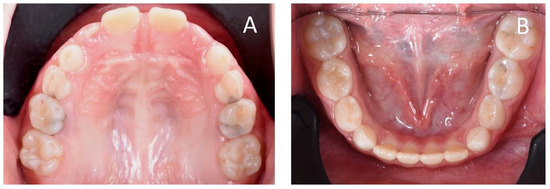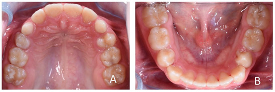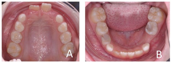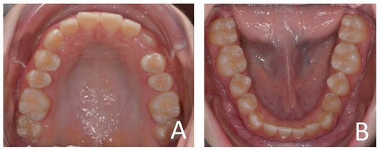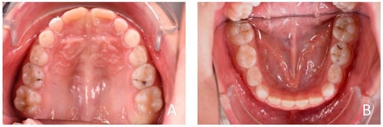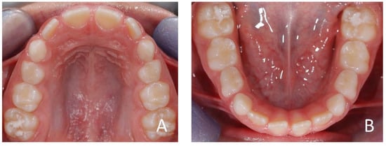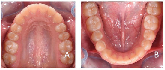 Final occlusal photos of dental arches (8-year-old). (A) Upper arch; (B) lower arch.