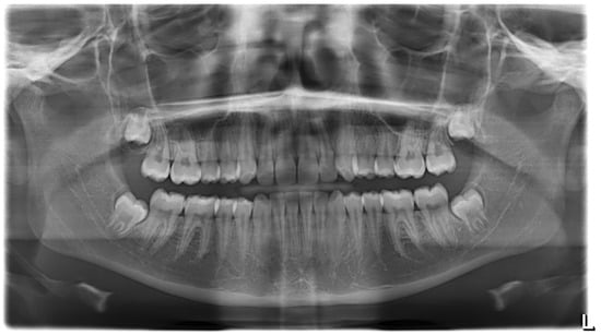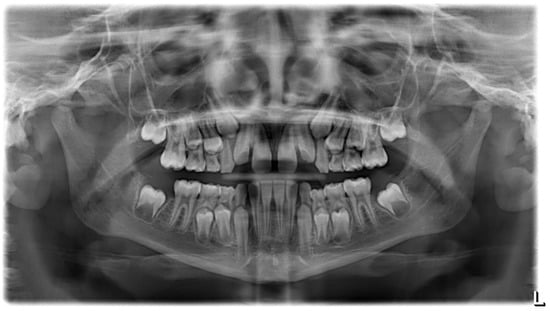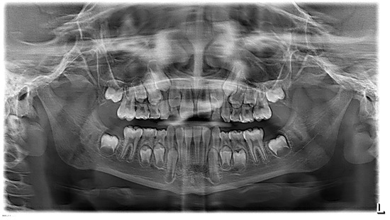 Radiographs of the subject at the screening. Orthopantomography X-ray before treatment (10-year-old).