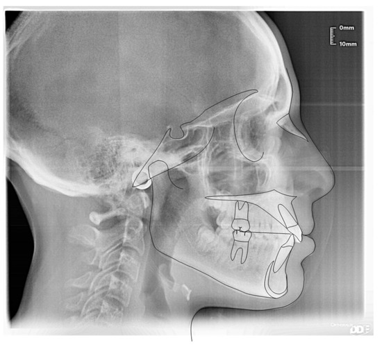Cephalometric tracing (DeltaDent software) after treatment and a 3-year follow-up period (14-year-old).