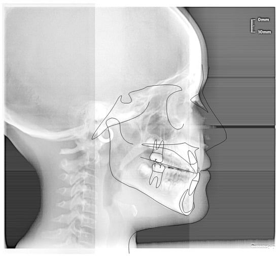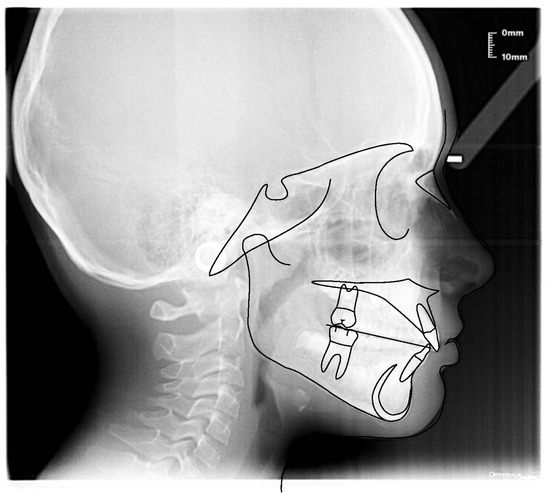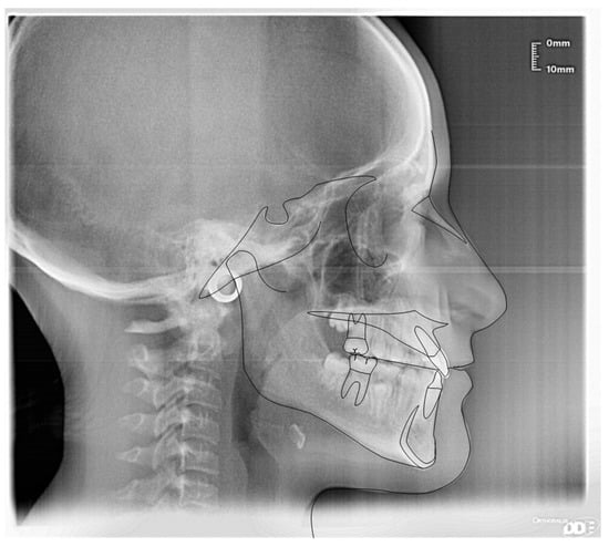 Cephalometric tracing (DeltaDent software) after treatment (9-year-old).