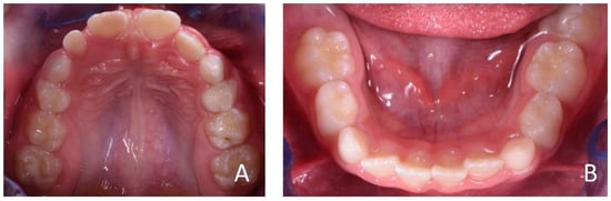 Initial occlusal photos of dental arches (10-year-old). (A) Upper arch; (B) lower arch.