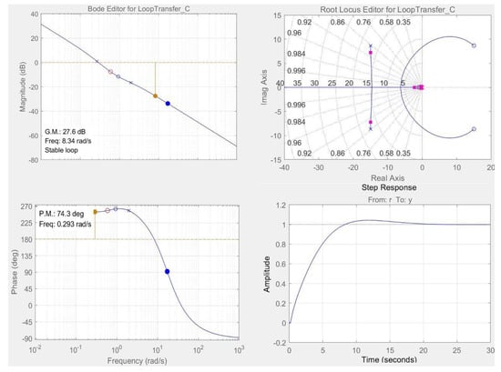 which could precisely track different reference control inputs with desired dynamic responses characteristics including transient and steady-state response characteristics []. It is worth mentioning that the optimal closed-loop MFC-biosensor control system has a pair of dominant complex-conjugate closed-loop poles (−15.47 ± 7.73j), so that the response of the system is dominated by this pair of complex-conjugate closed-loop poles. The presence of such poles can effectively reduce the effect of nonlinearities such as dead zone, backlash, and Coulomb friction, and even the transfer function of MFC-biosensor is somewhat inaccurate due to internal variations and external variations in the practical application, realizing tract accurately, and predicting the dynamic process of TOC in PSP []. Simultaneously, the optimal closed-loop MFC-biosensor control system has also satisfied phase margin and gain margin to produce the best dynamic response performance with proper delay time, rise time, peak time, overshoot, and settling time.
