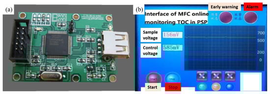 Data acquisition card (a) and graphical user interface of online monitoring TOC in PSP by the closed-loop MFC-biosensor control system (b).