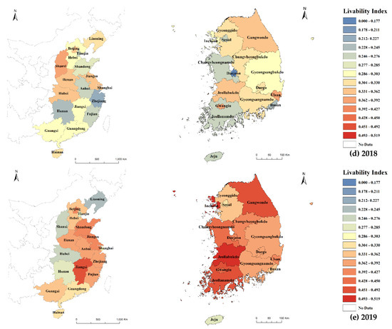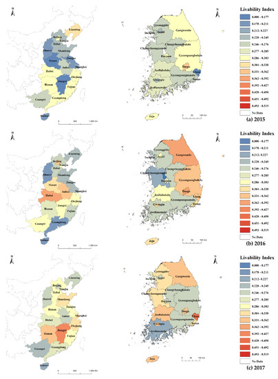3.2. Spatial Analysis of the Livability Index of South Korea and China