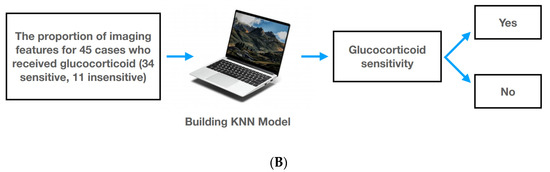 Taking the proportions of different imaging features as the input and glucocorticoid sensitivity as the output, prediction models were established by using the k-nearest neighbor (KNN) algorithm and support vector machine (SVM) algorithm, and the advantages and disadvantages of the two algorithms were compared.