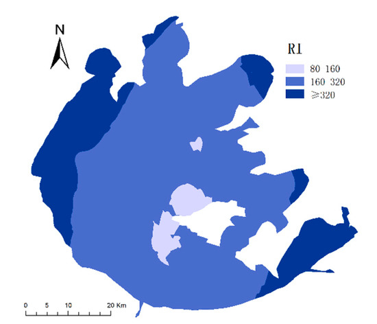 The PLI values for the surface sediments of Taihu Lake ranged from 0.23 to 2.65, with an average value of 0.92, and 23.33% of the sampling points had PLI values between 1 and 2, indicating that there may be moderate contamination. We also found that there was only one point with a PLI value >2, located at sampling point 11 in the northern region of the Taihu Lake area. The RI values for eight HMs in the surface sediments of Taihu Lake ranged from 157.70 to 569.63. The average RI value was calculated to be 273.03, which was >150, indicating that the eight HMs posed a moderate ecological risk. As illustrated in Figure 6, the RI value in northern Taihu (325.95) was higher than those of the southwestern region (231.45) and the eastern region (197.46). This also confirmed that the sediments in the northern Taihu Lake had a high level of ecological risk posed by the HMs, while the southwestern and eastern regions had moderate levels of ecological risk. Li et al. [29] also reported that northern Taihu Lake was identified as a heavy pollution region suffering from polycyclic aromatic hydrocarbons (PAHs) and HMs.