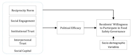 10]. However, to the best of our knowledge, the literature that uses social capital to explain residents’ willingness to participate in food safety governance is rare, and there is no literature with Chinese residents as the research object.