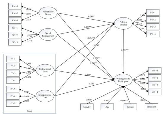 In this study, SEM could be used to explore the effects of social capital and political efficacy on residents’ willingness to participate in food safety governance. The main conclusions are as follows.
