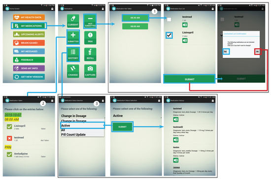 - Dasgupta, D.; Johnson, R.A.; Chaudhry, B.; Reeves, K.G.; Willaert, P.; Chawla, N.V. Design and evaluation of a medication adherence application with communication for seniors in independent living communities. In Proceedings of the Amia Annual Symposium Proceedings, American Medical Informatics Association, Chicago, IL, USA, 12–16 November 2016; Volume 2016, p. 480. [Google Scholar]