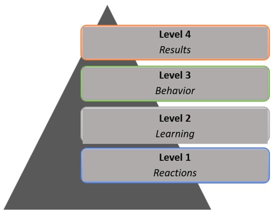 - Kirkpatrick, J.; Kirkpatrick, W. Kirkpatrick’s Four Levels of Training Evaluation; Association for Talent Development: Alexandria, VA, USA, 2016; ISBN 9781607280088. [Google Scholar]