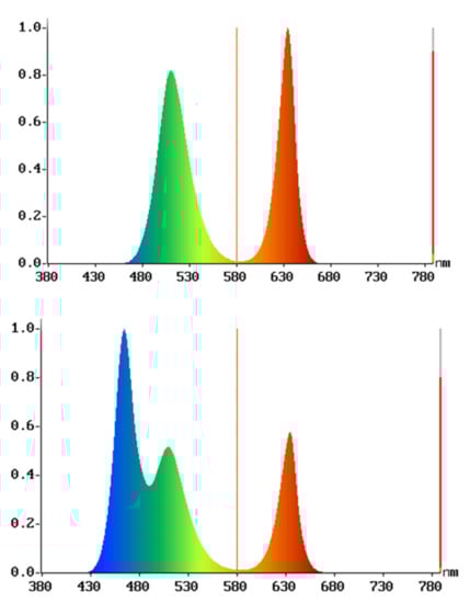 - Brainard, G.C.; Hanifin, J.P.; Greeson, J.M.; Byrne, B.; Glickman, G.; Gerner, E.; Rollag, M.D. Action Spectrum for Melatonin Regulation in Humans: Evidence for a Novel Circadian Photoreceptor. J. Neurosci. 2001, 21, 6405–6412. [Google Scholar] [CrossRef] [PubMed]