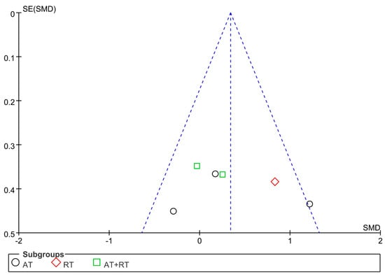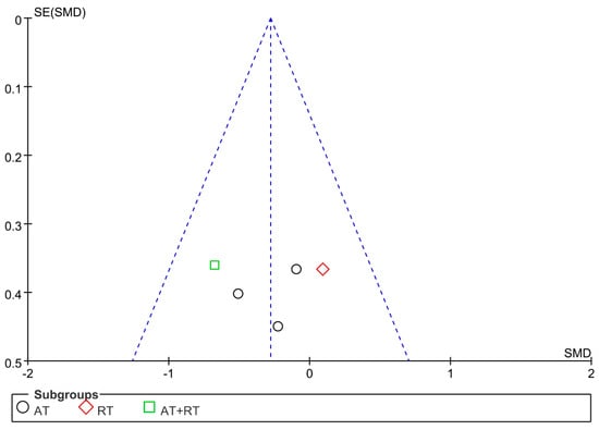 3.4. Meta-Analysis of the Effect of Different Training Modalities on the Level of IL-6 in Adolescents with Obesity