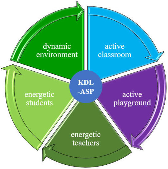 In summary, KDL-ASP focuses on child and adolescent health literacy cultivation and embraces the fusion education concept for instruction, which ensures that children and adolescents participate in MVPA for at least 60 min every day in school through comprehensive sports activities that take place in the classroom and outside to improve their physical and mental health. The plan covers five elements: active classroom, active playground, energetic teachers, energetic students, and dynamic environment (see Figure 1). KDL-ASP is the latest achievement in sports and health course reform and innovation in China. Discussing its influence on child and adolescent physical fitness can provide the practical basis for a wider range of applications in the future.