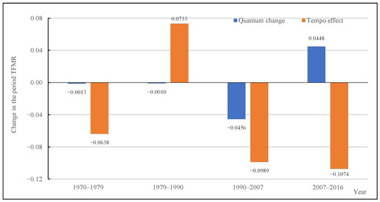 4.3. Decomposition of Changes in Period TFMR in Four Distinct Periods, 1970–2016