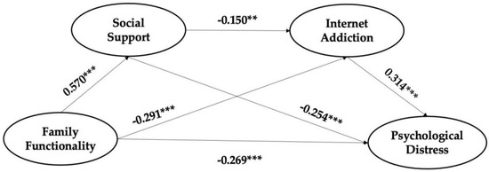 2.3. Family Functionality, Internet Addiction, and Psychological Distress