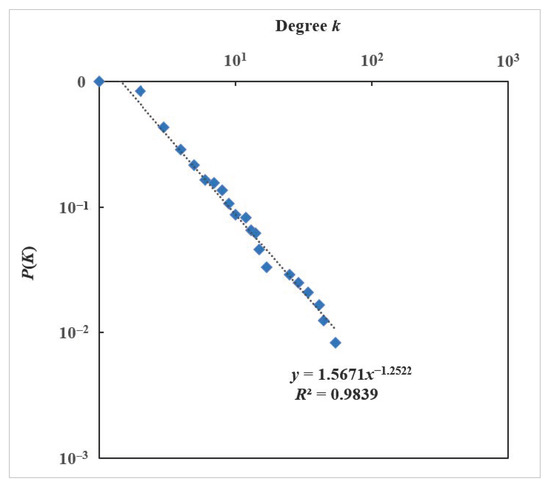 The cumulative degree distribution of the HMTACN follows an exponential function, , as shown in Figure 6. This means that the HMTACN is in line with a scale-free network power-law distribution. A few important causal nodes account for the high degree value. For example, the top 21.4% causal nodes account for the majority (62.2%) of the whole causal relations, and most causal nodes only have 1~3 causal relations. So, if nodes with high degree are attacked, the HMTACN will become fragile and change into a set of independent subnetworks.