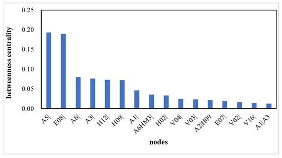 The betweenness centrality of nodes refers to the proportion of geodesic curves passing through this node among all other nodes. It reflects the importance of nodes as intermediaries. The higher the betweenness centrality of nodes, the greater the role of information transmission in the network. A node with high betweenness centrality has important influences on the transfer of items through the network. Figure 7 shows the betweenness centrality of the HMTACN.