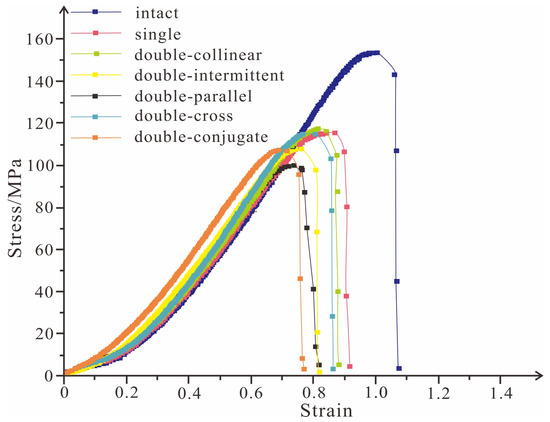 - Bobet, A.; Einstein, H.H. Fracture coalescence in rock-type material under uniaxial and biaxial compressions. Int. J. Rock Mech. Min. Sci. 1998, 35, 863–888. [Google Scholar] [CrossRef]