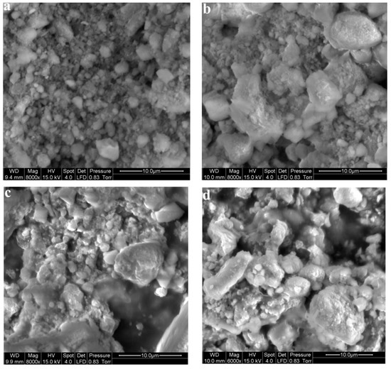 SEM images of solid stone coal. (a) Initial stone coal sample; (b) stone coal in Bioreactor after six cycle operation; (c) stone coal in Control 1 after six cycle operation; (d) stone coal in Control 2 after six cycle operation.