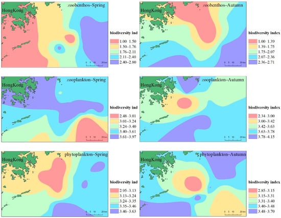 Figure 3. It can be seen from the chart that the water quality in the west and north of Hong Kong’s offshore coast is better in the spring. That is, the water quality in the offshore coast is better than that of the far off shore, whereas it is the opposite in the autumn. This may be due to seasonal industrial and fishing activities. August is generally the end of the fishing moratorium, and autumn sampling occurred in September, at the peak of fishermen’s fishing activities. Most fishermen on fishing vessels have an arbitrary discharge of domestic sewage, and ballast water or sewage can lead to higher levels of heavy metals, resulting in differences in the marine environment in the autumn compared with spring [