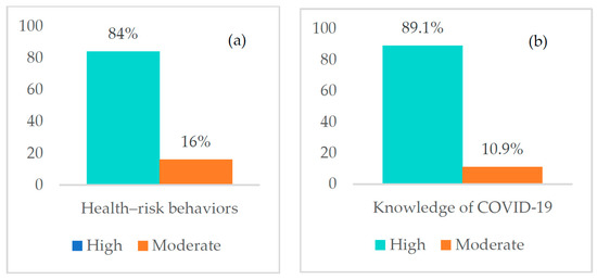 Participant levels of (a) health-risk behavior levels and (b) knowledge about COVID-19.